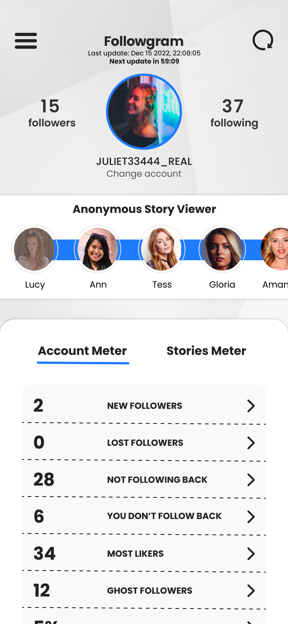 In a couple of seconds Followgram PRO will scan your account and will get all the information needed to calculate al your stats.